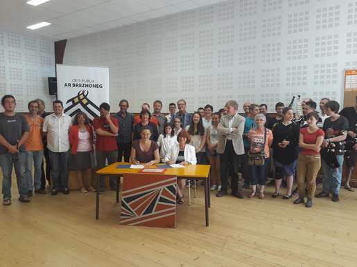 La cérémonie de remise du label Ya d’ar brezhoneg s’est déroulée à Plabennec le samedi 17 juin 2017 en présence de Mme Lena Louarn, vice-présidente du Conseil régional en charge des langues de Bretagne et présidente de l’Office Public et de Claire Le Guellec, présidente de l’association.