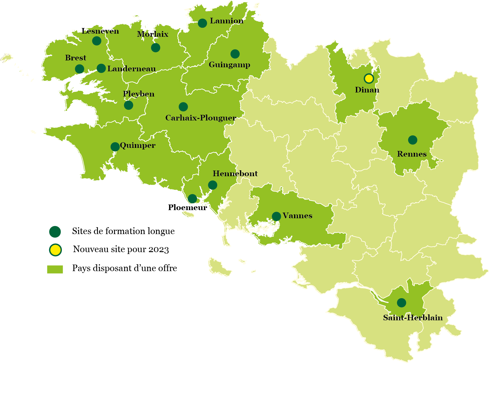 Les formations longues, de 6 et 9 mois, sont proposées dans 16 villes, avec environ 350 places de stage :
