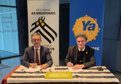 Le 13 mars, Paul Molac, président de l’OPLB, a remis le label de niveau 3 de la charte Ya d’ar brezhoneg à Ronan Loas, Maire de Ploemeur et Mathieu Gauthier-Le Priol, conseiller municipal délégué à la langue bretonne, en présence de Damien Girard, député du Morbihan, et de nombreux partenaires.